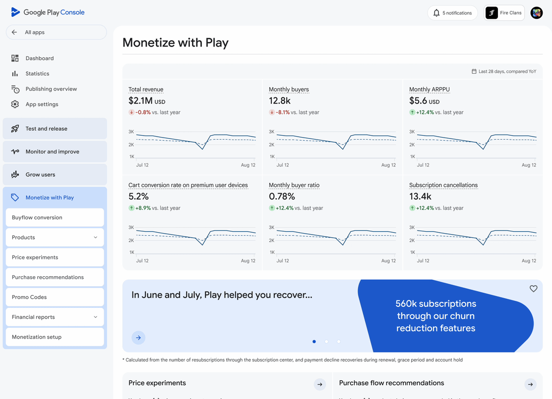 To build a thriving business on Google Play, you need more than just data – you need a clear path to action. Today, we’re announcing a suite of upgrades to the Google Play Console and beyond, giving you greater visibility into your financial performance and specific, data-backed steps to improve it.