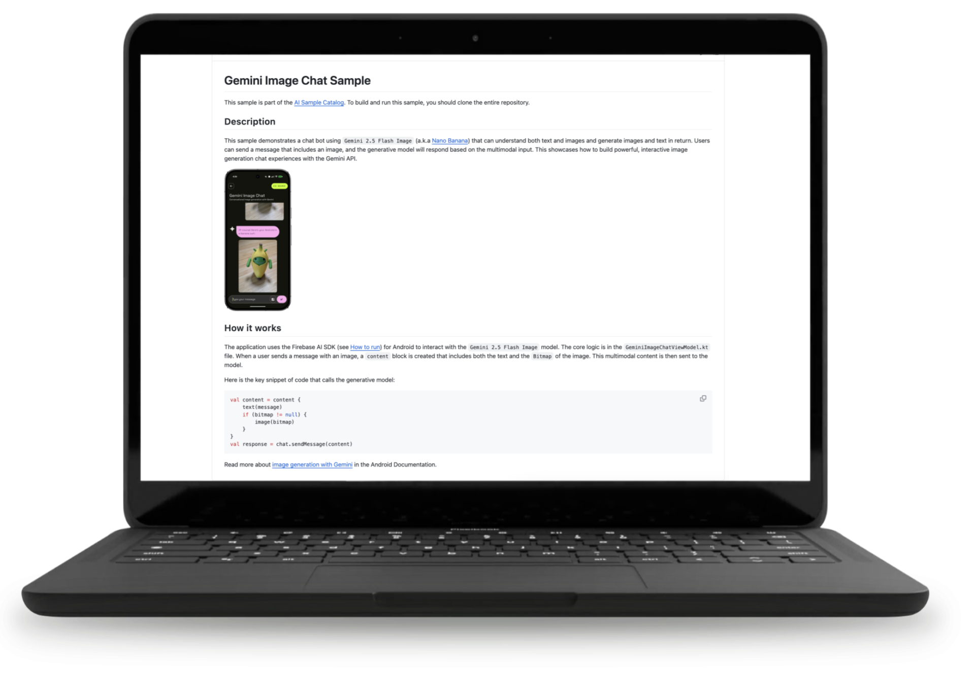 The samples using cloud inference are built using the Firebase AI Logic SDK, and the ML Kit GenAI API is used for the samples running on-device inference. We plan to continue creating new samples and updating the existing ones as new capabilities are added to the models and SDKs.