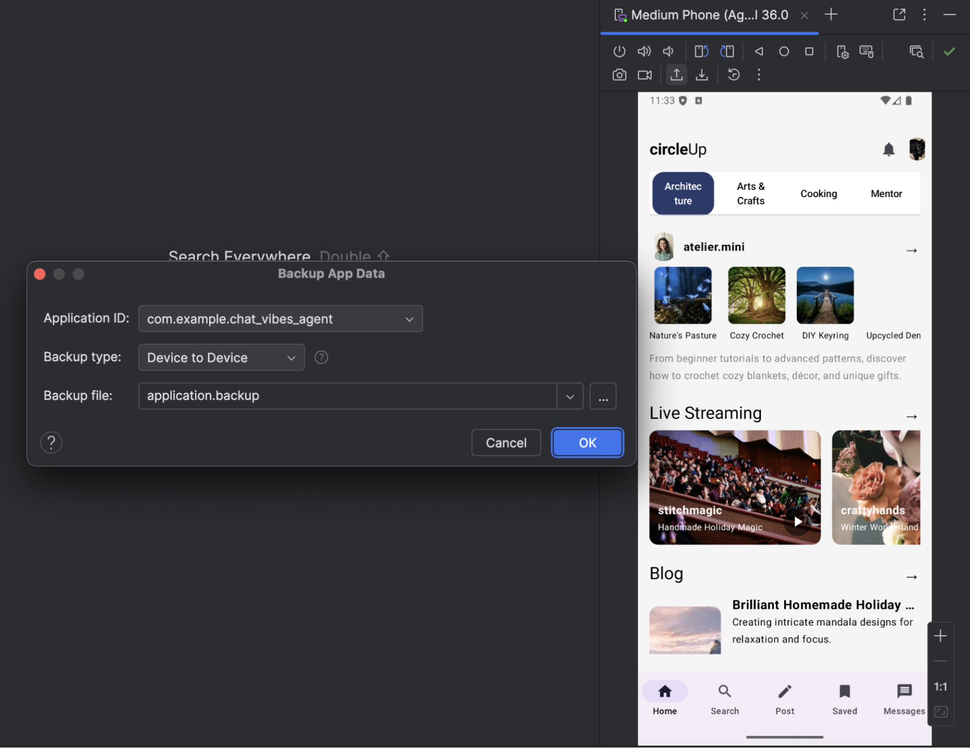 We added tools to test your app’s data backup and restoration flow. This is critical for ensuring a smooth user experience when switching to a new device. You can generate a backup of your app’s data, restore it to another device, and even attach backups to your run configurations to test this flow easily.