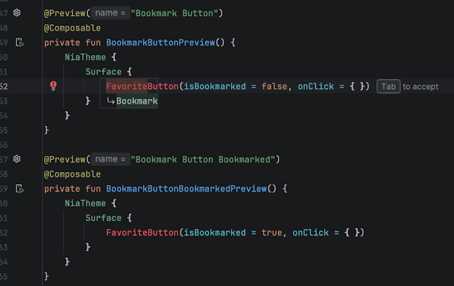 Classic autocomplete is great for finishing your sentences, but coding is rarely a linear path. Often, a change in one place requires a secondary change elsewhere—like adding a new parameter to a function and then needing to update its invocations, or a UI preview update when a Composable is changed. Traditionally, this meant breaking your focus to hunt down the related lines of code that need attention.